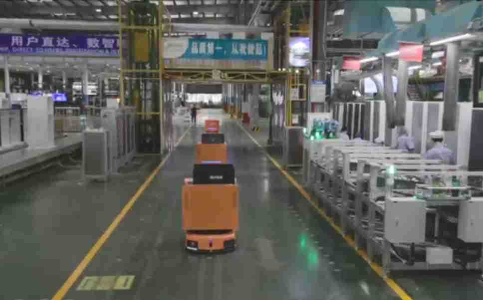 为车载冰箱物流配送打造的智能解决方案,,包含产中物流通过潜伏举升AMR搬运至线边,,产后成品物流智能仓储,,,,流程包含产中物流智能齐套入库,,线边安灯叫料AMR智能配送至线边,,成品入库、、、出库,,,,通过无人堆高车机器人,,智能仓储管理替代人工作业管理,,,,实现更高存储、、更高效率、、更具柔性化的解决方案。。。