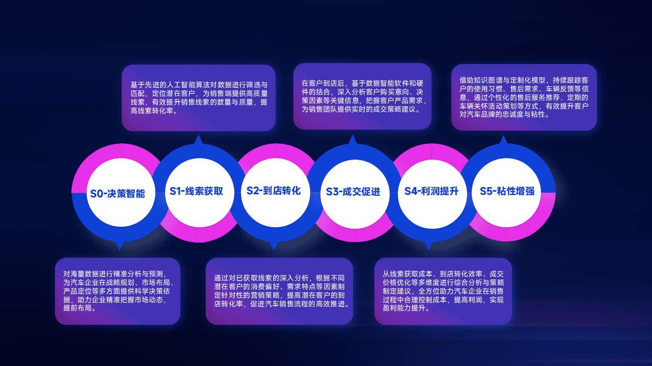 通过拓宽潜在客户来源、、优化线索分配并提高到店转化率,,以增强销售效率。。。。同时,,利用线索数据不断优化分析模型,,,有效提升转化率,,,,扩大营销影响力。。